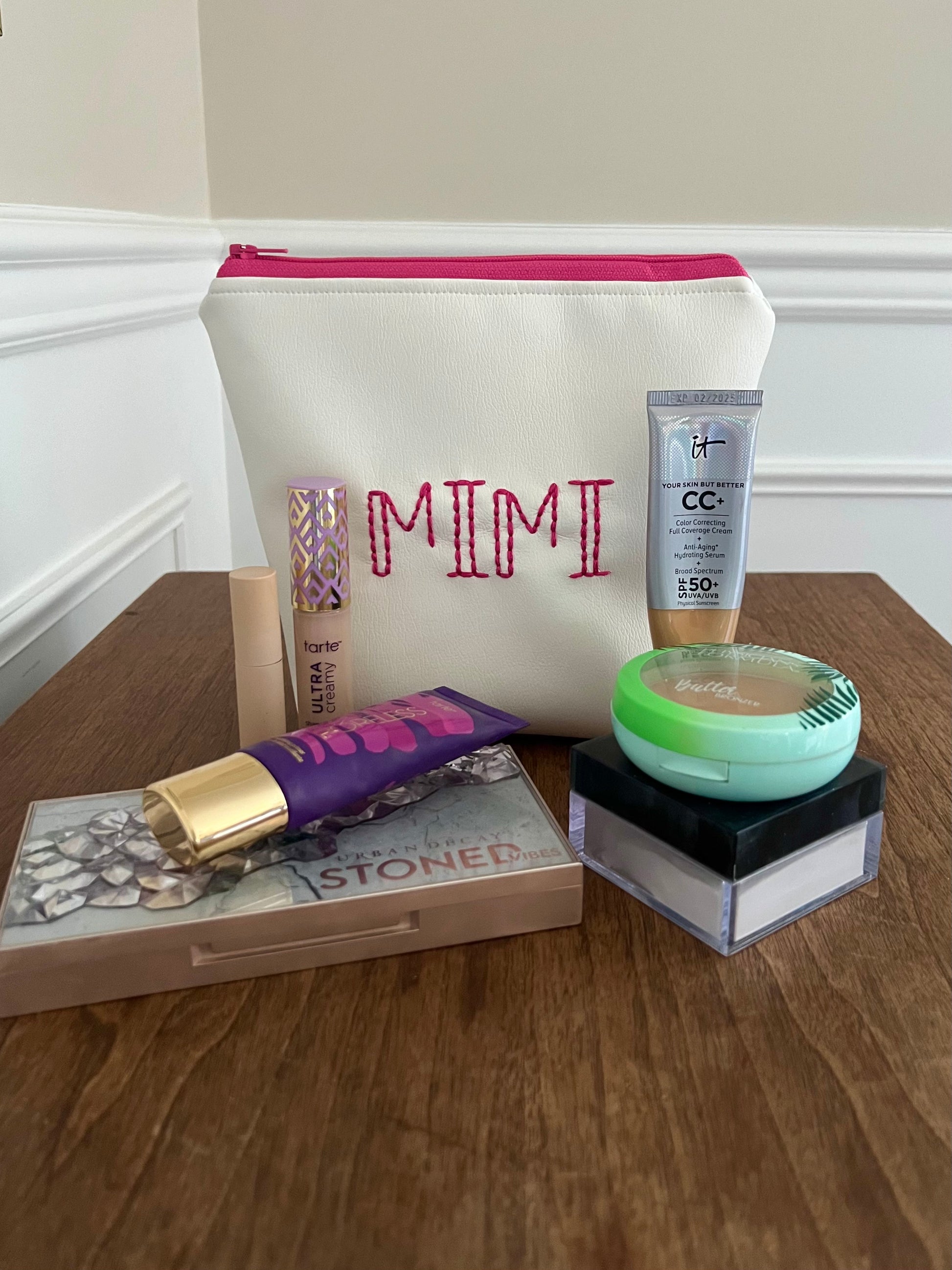 How to order: Add quantity of pouches you would like to order to cart. When checking out, in the special instructions section please type the word(s)/name(s) you want hand embroidered onto the pouch, along with the correlating embroidery/zipper color. Example: FRANCESCA - pink embroidery