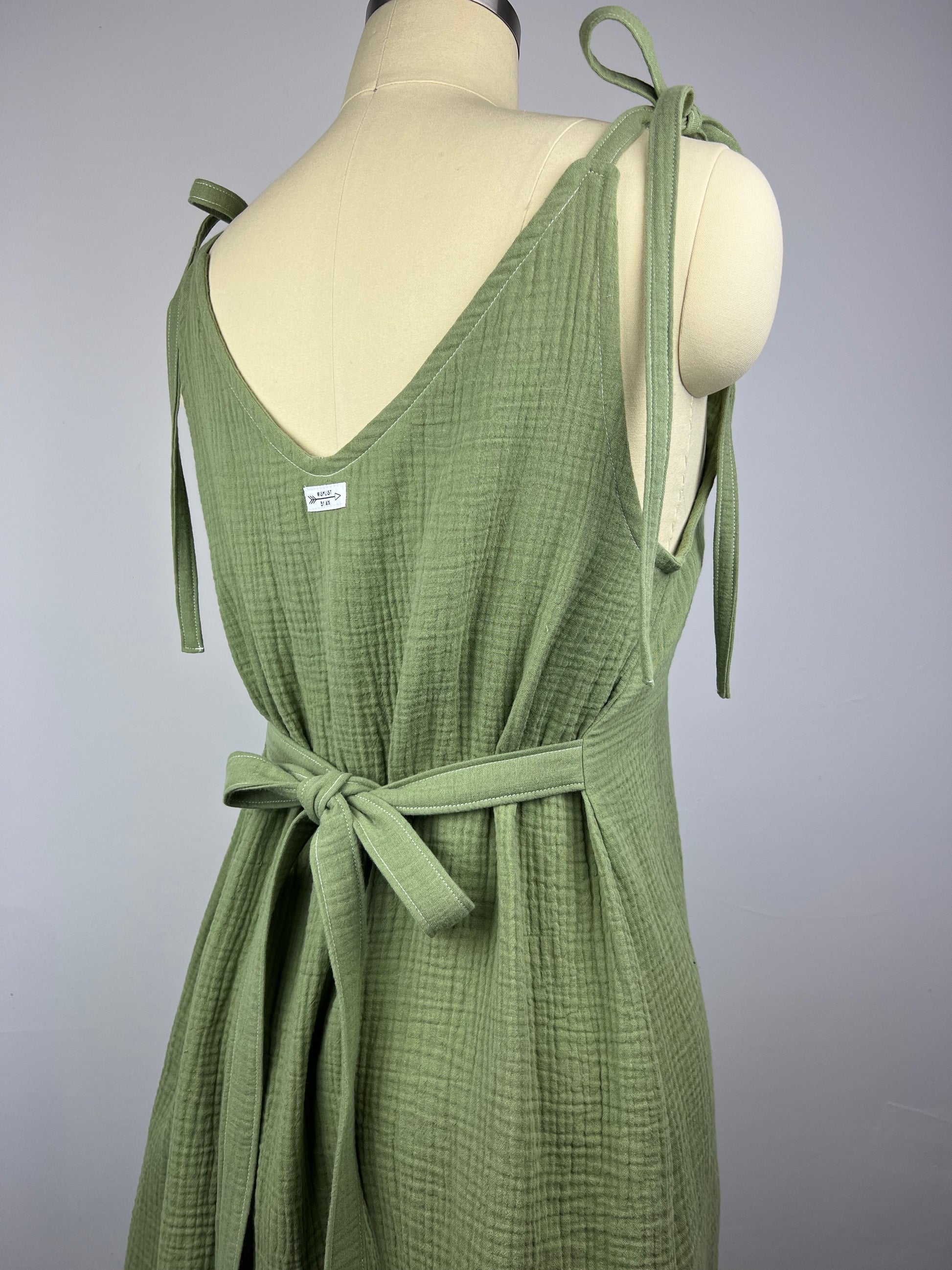 This stunning sundress is perfect for the Spring and Summer. This gauze material is 100% cotton making it comfortable, light weight, and breathable. Each dress is made from a different solid color. This a-line silhouette features two ties sewn into the side seams for that perfect built in belt. Tie around the front or back for an extremely flattering fit. The straps are little ties giving you the ability to adjust the straps. This will ensure the waist ties hit you at the smallest part of your waist.