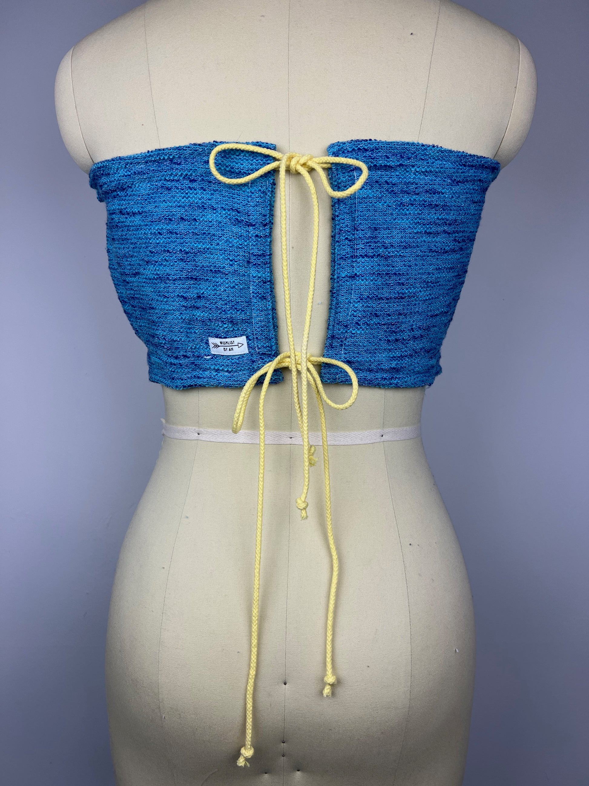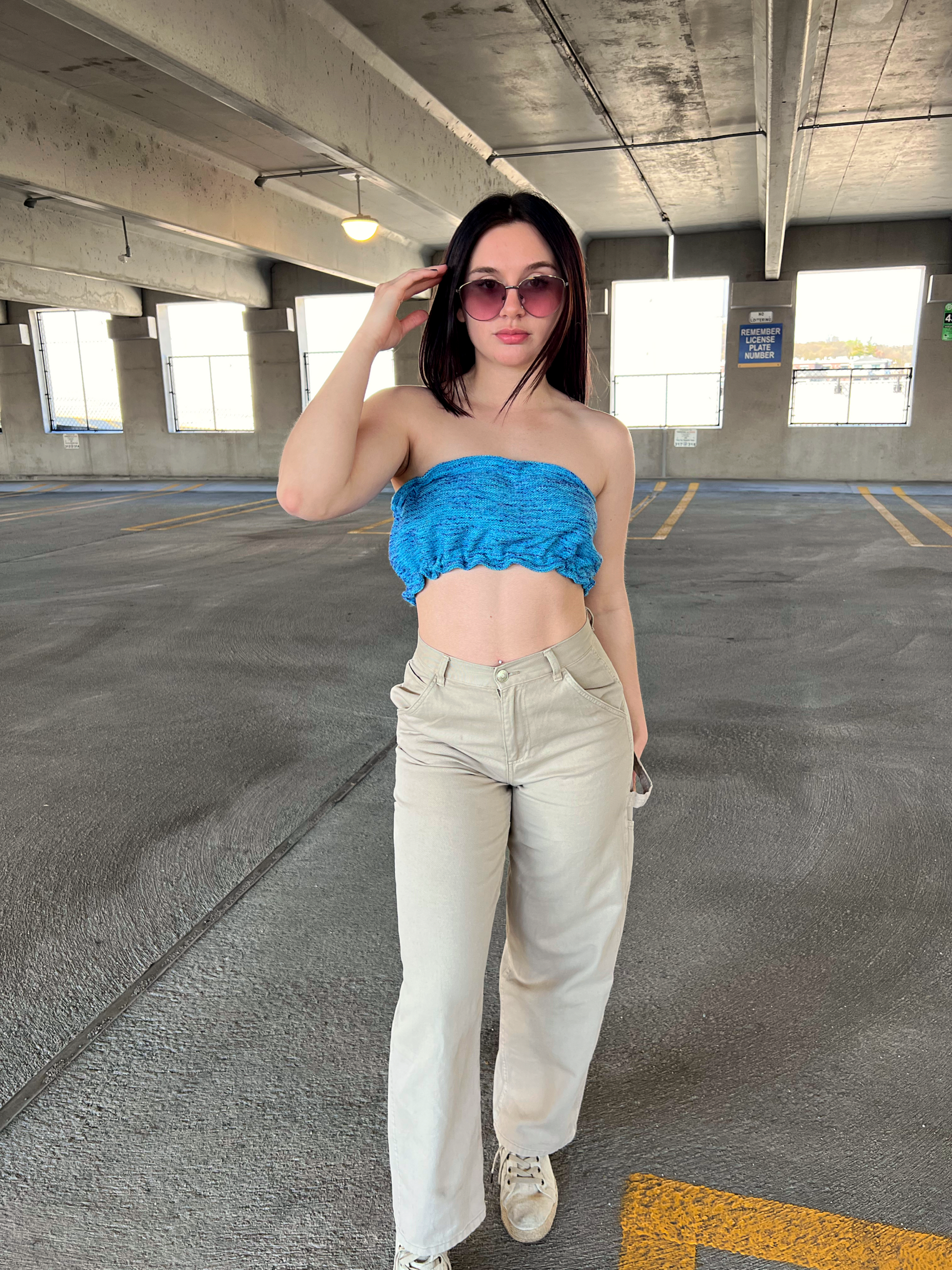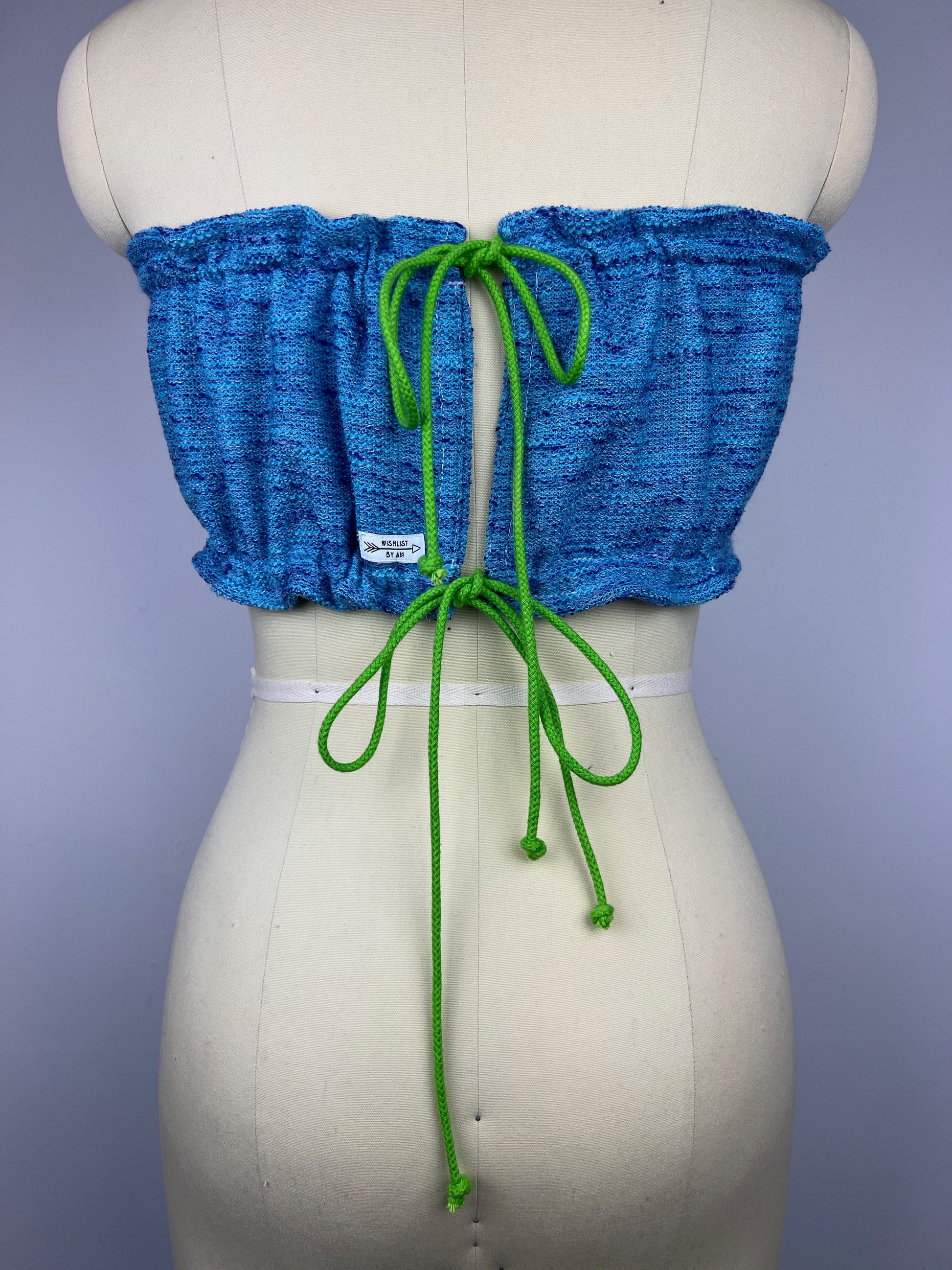 This bandeau styled tube top features a stunning knit fabric and rope ties. These are one size, however these will fit wide range of shapes and sizes. The bandeau is one long rectangle with a casing at the top and bottom. The tie is completely adjustable as well as the amount of scrunching throughout the bandeau. You can scrunch all the fabric in the front, for an open back, you can evenly scrunch the fabric throughout for a small slit of skin showing in the back. These bandeau's are very versatile and the knit fabrics gives them a lux feel. Each bandeau features different color ties.